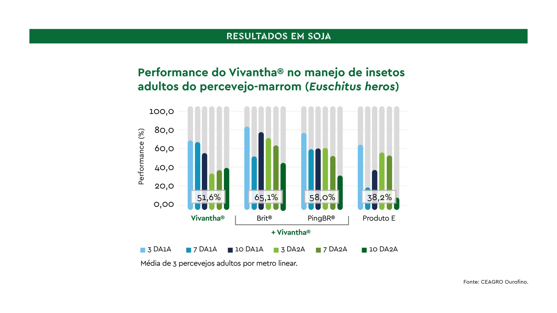 Performance do inseticida Vivantha no manejo de insetos adultos do percevejo-marrom (E.heros)