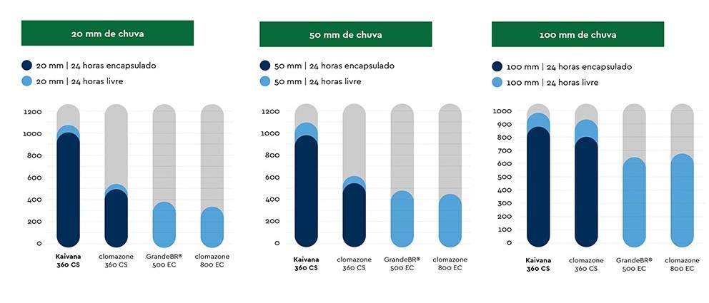 Kaivana 360 ® CS é um produto Reimaginado para a agricultura brasileira. Herbicida seletivo com aplicação em pré-emergência das plantas daninhas e na pré ou pós-emergência inicial da cultura de cana-de-açúcar. Graças ao seu sistema de microencapsulamento, o ativo é liberado gradativamente, diminuindo as perdas por volatilização, aumentando sua disponibilidade e transpondo-se da palha até o solo.