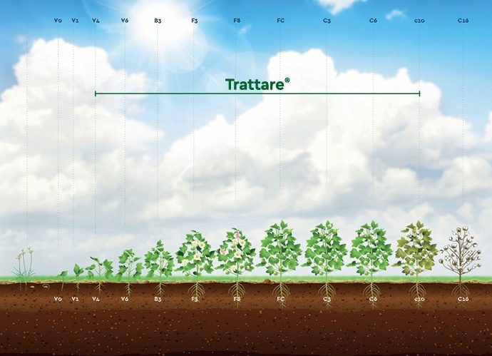 TRATTARE é um fungicida sistêmico que contém o ingrediente ativo PROTIOCONAZOL (pertencente ao grupo químico das triazolintiona que são inibidores da biossíntese do ergosterol, o qual é um constituinte da membrana celular dos fungos e pertence ao Grupo G1, segundo classificação internacional do FRAC) é utilizado no controle de doenças nas culturas de algodão, feijão e soja.